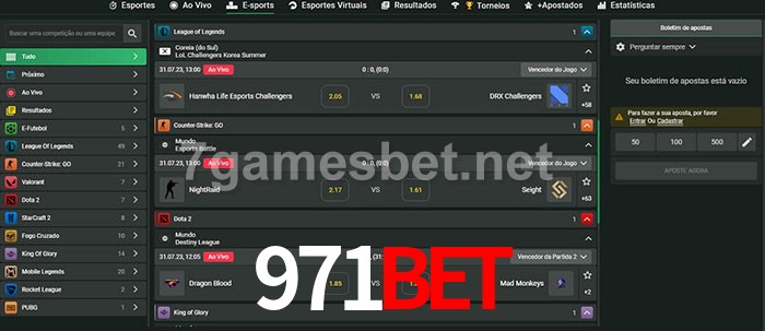 O 971Bet oferece uma grande seleção de opções de apostas em e-sports com probabilidades competitivas